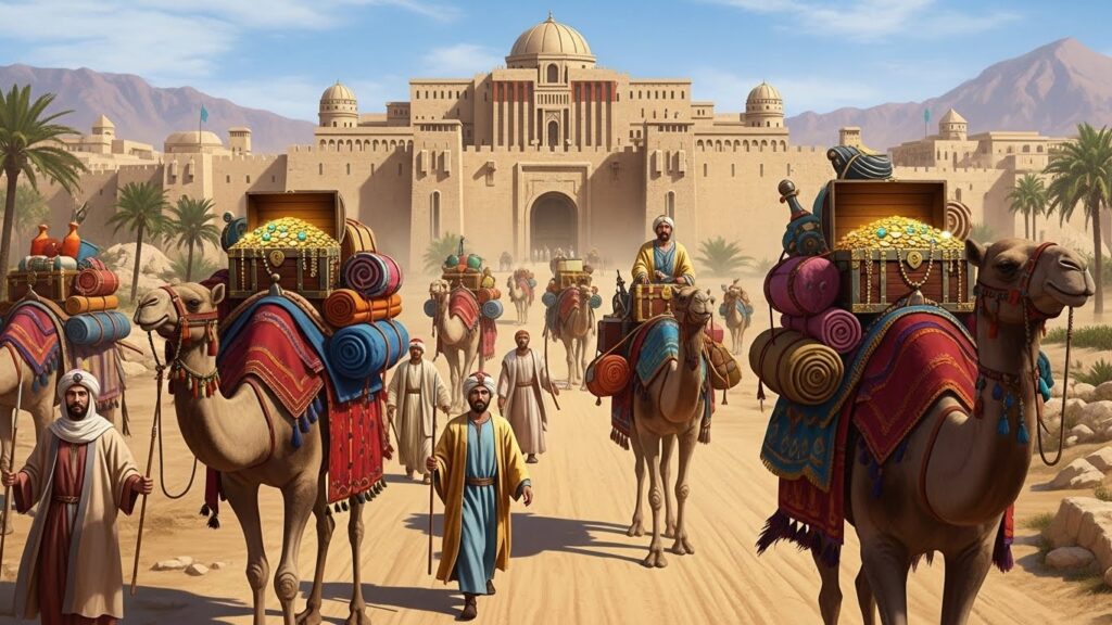 Um mundo externo, onde a cidade continuava seu ritmo normal, com mercados, caravanas e sacerdotes circulando pelas ruas…