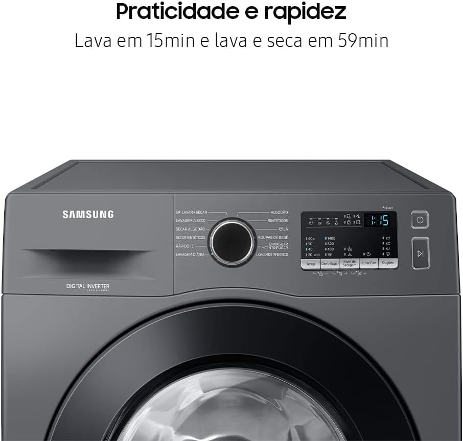 Se você busca praticidade, economia de tempo e resultados impecáveis, a Samsung WD11M é a escolha certa. Com capacidade de 11 kg para lavagem e 7 kg para secagem, essa máquina combina tecnologia de ponta, eficiência energética e design moderno, transformando sua rotina de lavanderia em uma experiência prática e sofisticada.