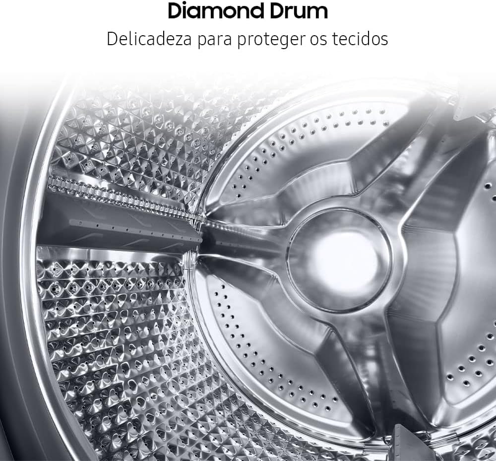 O coração da WD11M é o Motor Digital Inverter, uma das tecnologias mais avançadas da Samsung. Diferente de motores convencionais, ele utiliza imãs permanentes, eliminando escovas que desgastam o equipamento.